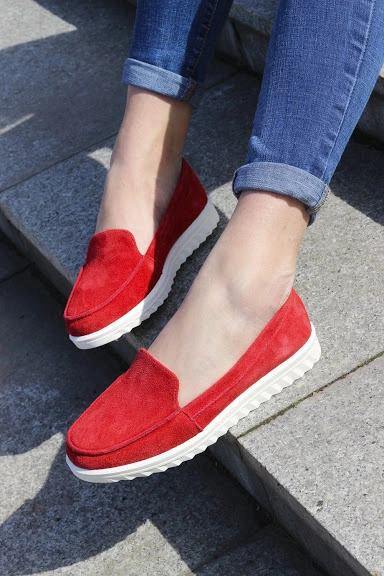 Лоферы красный замш опт