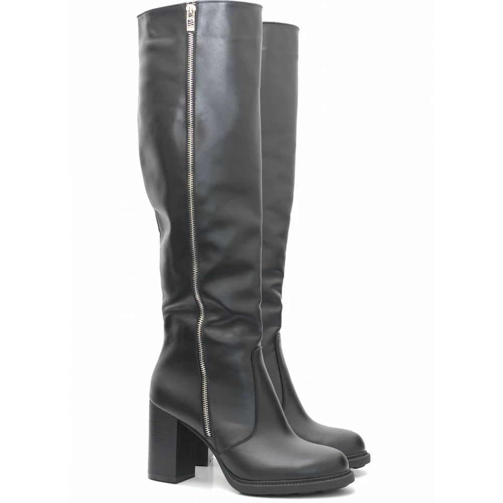Шикарные стильные сапоги на каблуке с декоративной молнией