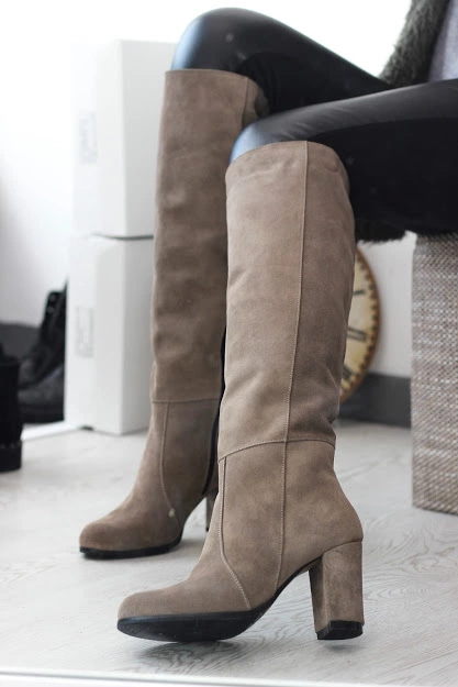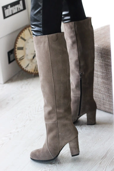 Сапоги на каблуке замш тауп опт